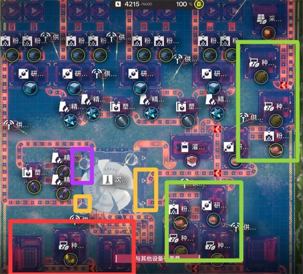 2、谷地通道:要求全升级,紫晶瓶是用来充当快递物资的。紫色部分出料口为紫晶矿,黄色部分出料口均为砂叶粉。蓝图分享码:EF018OI3EeaA912aUI73。