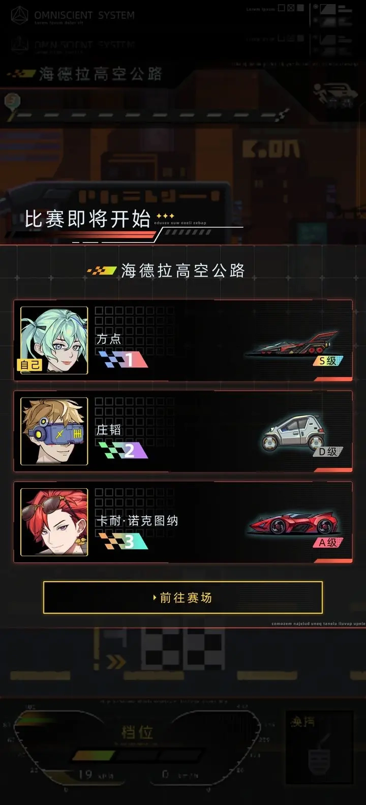 首先,你需要确保主角为女性,且年龄在19至25岁之间。前往参加高空公路赛事,在比赛中触发卡耐作为你的对手。