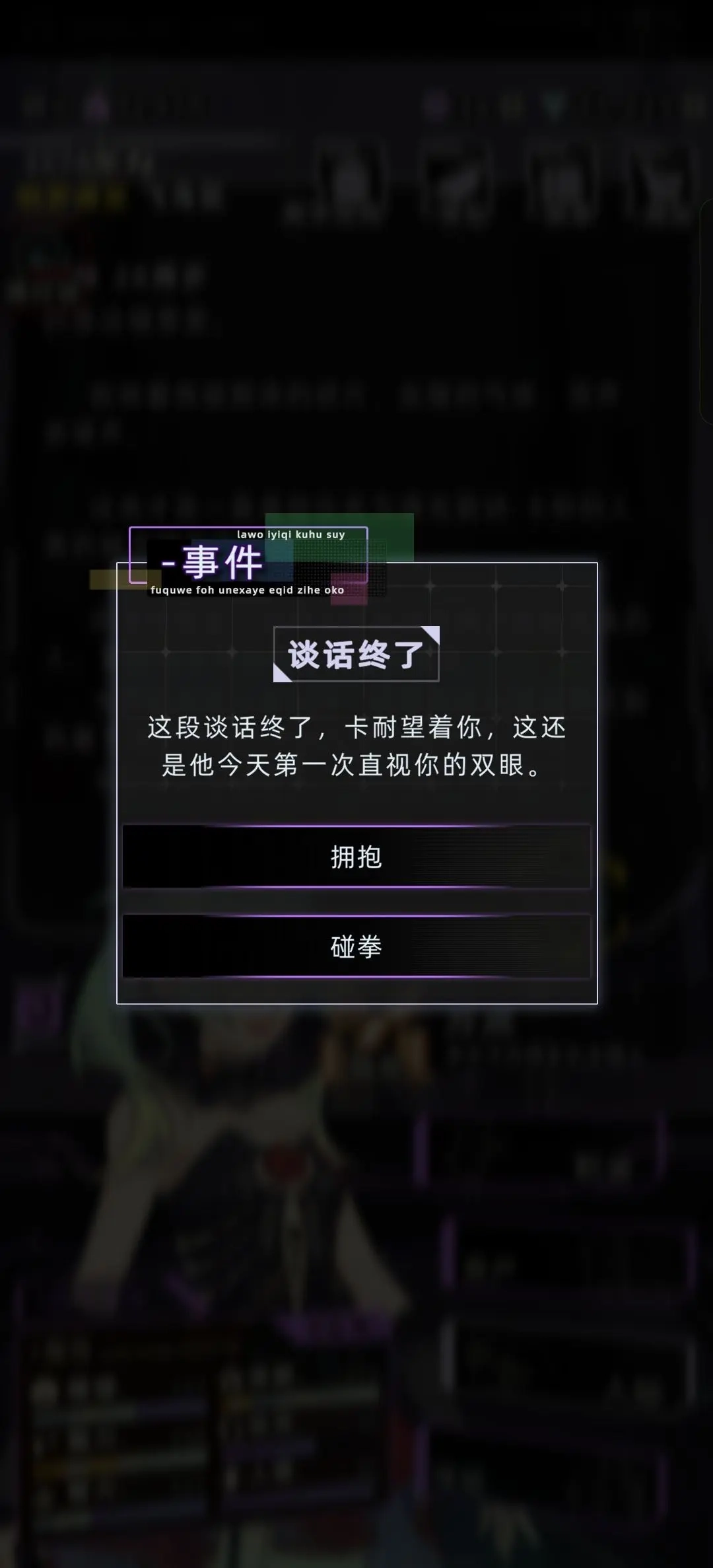 此选择将引发一场与卡耐的1V1比赛,你必须在这场比赛中取得胜利。胜利后,即可成功与卡耐建立朋友关系。
