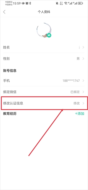 在个人资料页面里,找到并点击“修改认证信息”的选项,就能进入信息修改的流程了。