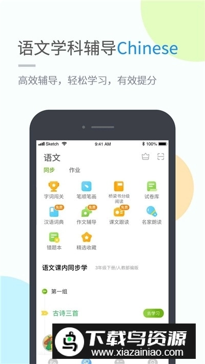语文辅导配备11项功能特权,涵盖作业辅导、汉语词典、字词闯关、笔画笔顺、句子仿写、作文宝典、课内同步学、老师作业、课文跟读、名家朗读与汉字听写。