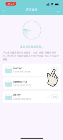 ②若当前已绑定其他体脂秤,想要新增绑定这一台秤,可通过【我的】-【我的设备】-【+】-【蓝牙搜索配对】-【连接】的路径,完成新设备的绑定操作。