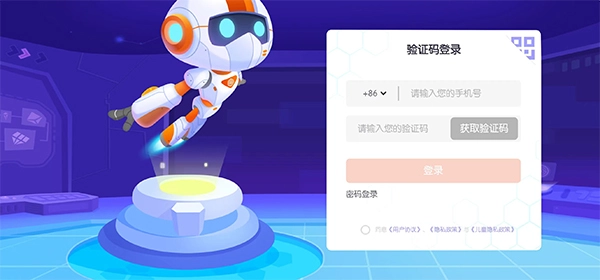 在本站安装核桃编程HD版,通过手机号获取验证码后登录;