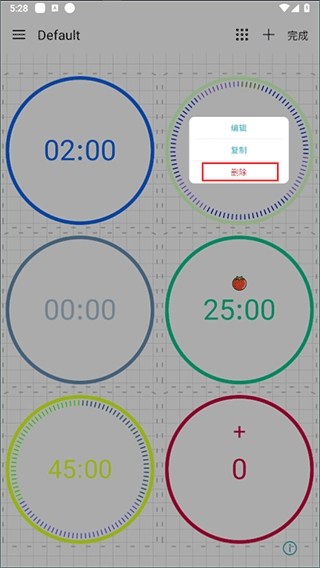方式一:进入编辑模式后,点击要删除的计时器,在弹出的窗口里选择删除选项就能完成操作。