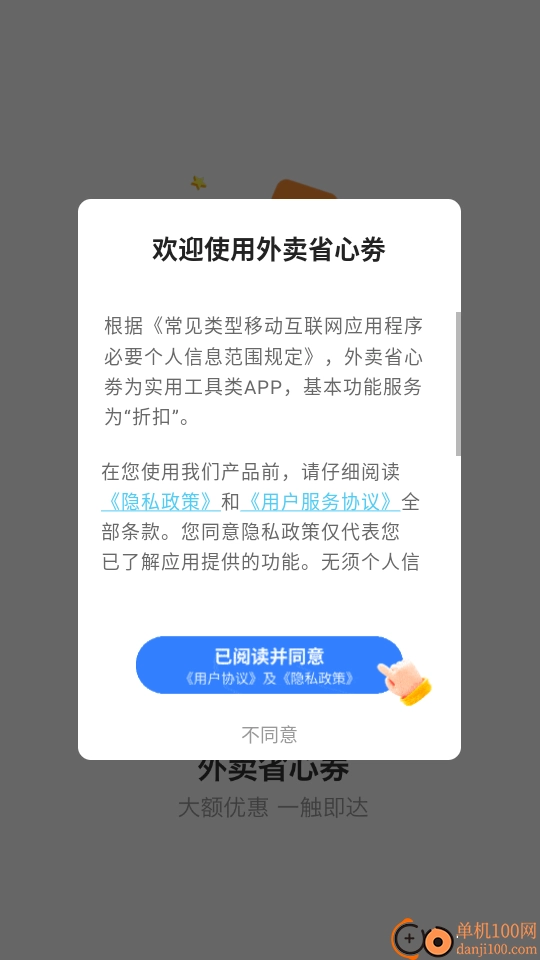 打开软件后,阅读“隐私政策和用户服务协议”,然后点击“已阅读并同意”按钮进入应用。