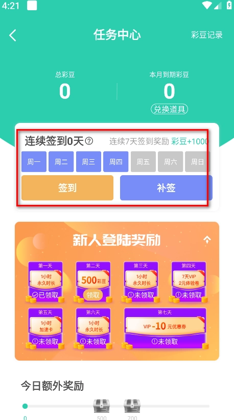 每天登陆也会有金豆奖励。