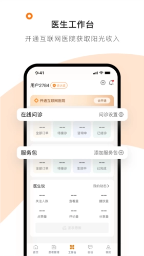 在线咨询、通知公告、复诊提醒等功能,能够助力医生提高诊疗效率,获取阳光收入,还能让医生快速接触到更多患者。
