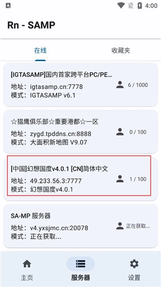 然后点击服务器并在线服务器选择其中一个服务进入;