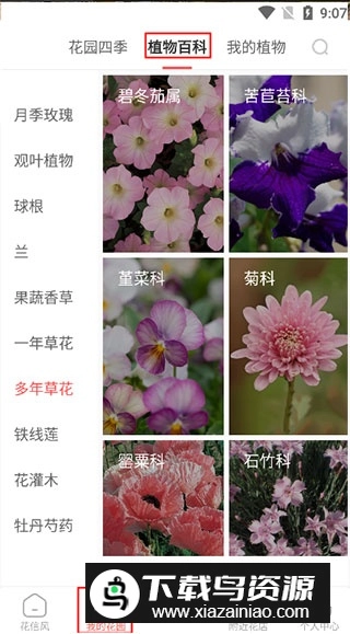 点击下方“我的花园”,进入后找到“植物百科”,里面收录了丰富的花卉品种,您可以挑选自己喜爱的。