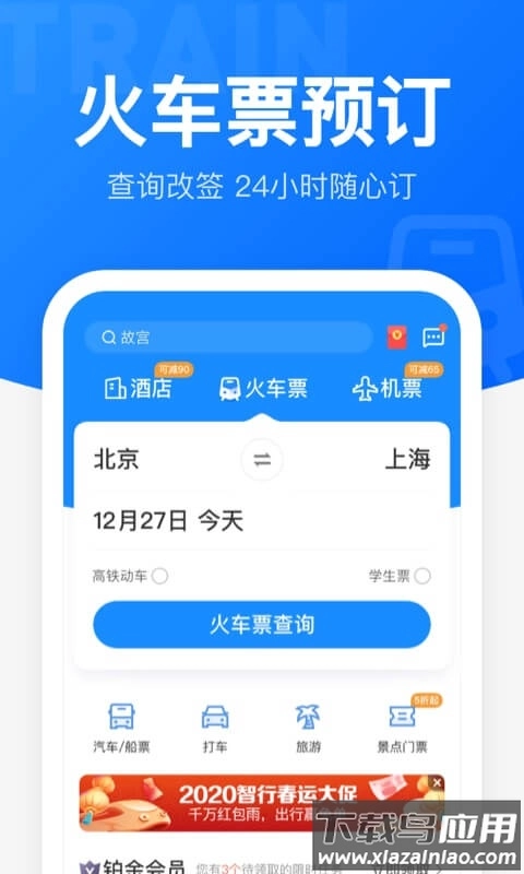 v9.8.8版本更新:机票推出“高铁价”订购活动,部分线路补贴力度最高达1000元;春运期间每日开展100元机票券秒杀活动;汽车票新增免费提前占座功能;火车票开放春节预约抢票通道,若抢票失败可获得相应赔偿。