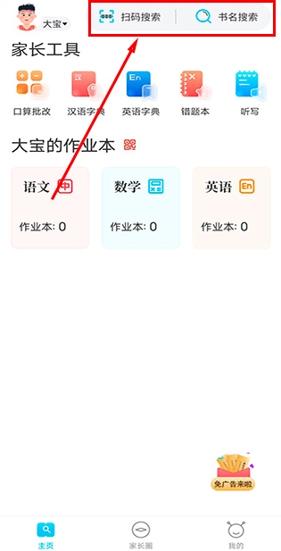 首先在本站完成软件安装,随后进入主页,接着点击“扫描搜索”或者“书名搜索”选项。