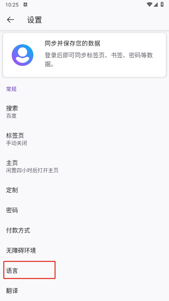 在出现的页面中点击“语言”。