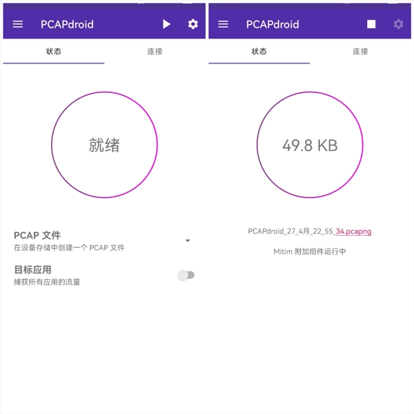 PCAP文件:直接以PCAP格式将文件存储至手机中;