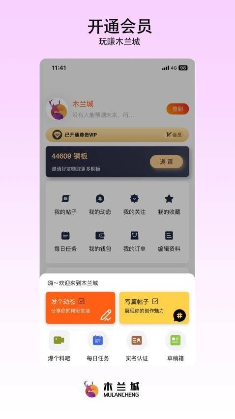你可以在木兰城中创建并发布个人朋友圈,和朋友们分享生活里的点点滴滴,记录下那些美好的时光。