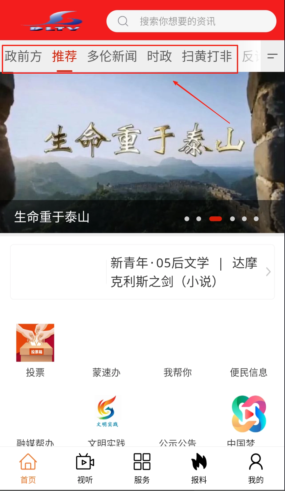 你可以通过顶部的搜索栏输入关键词来精准定位想要的信息,也能在视听板块里观看短视频,快速了解新闻的大致内容。