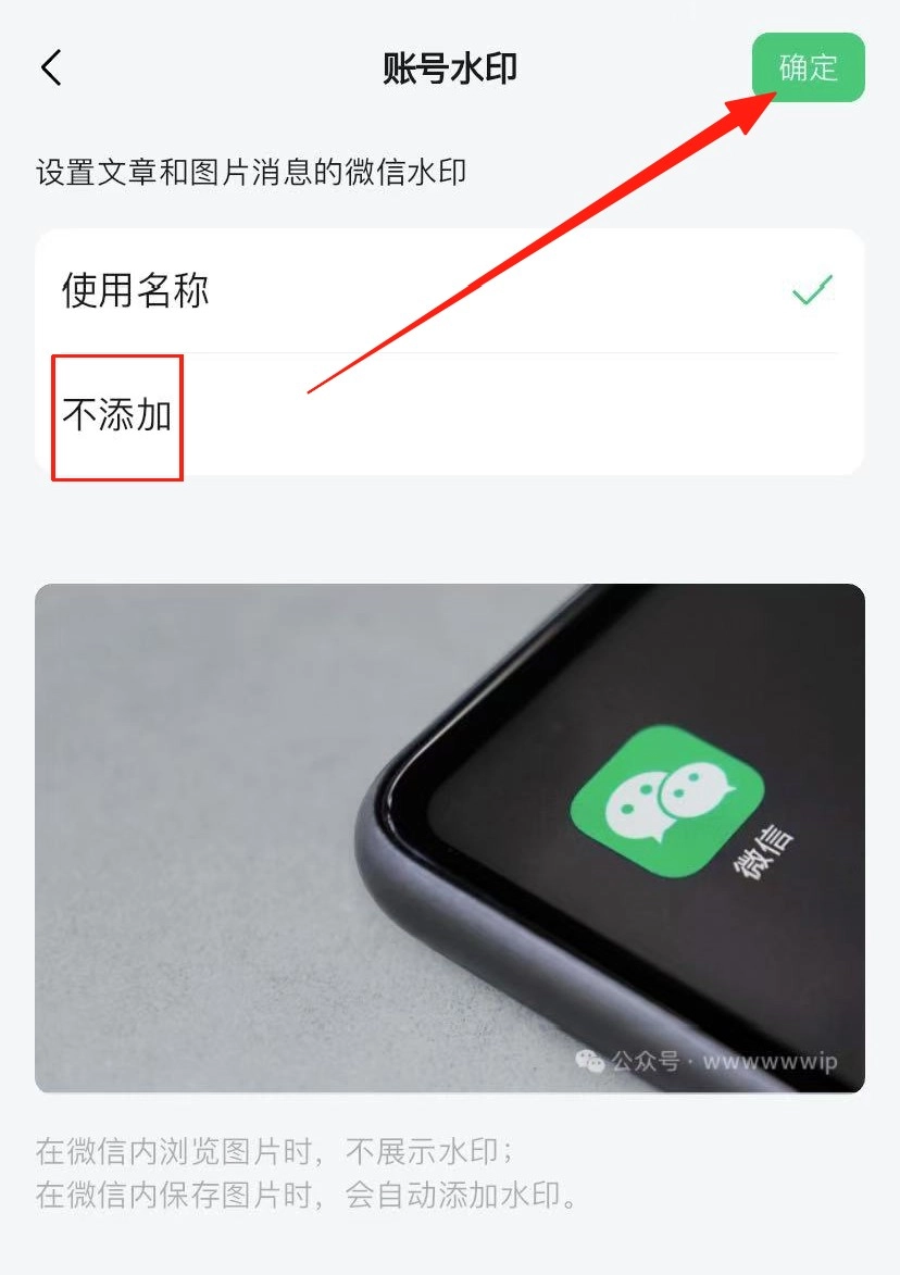 选择不添加,然后点击确定就可以移除公众号水印了