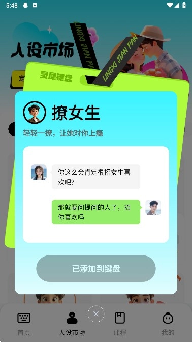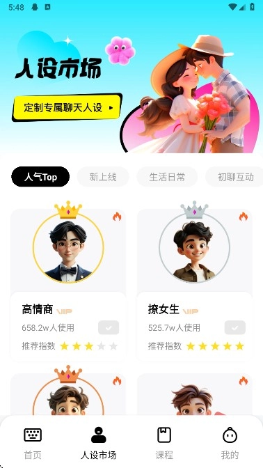 点击人设市场可以根据需求进行选择