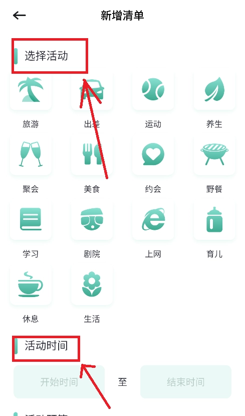 勾选你想要填写的清单内容,并添加出门旅游的预期时间,即可完成添加。