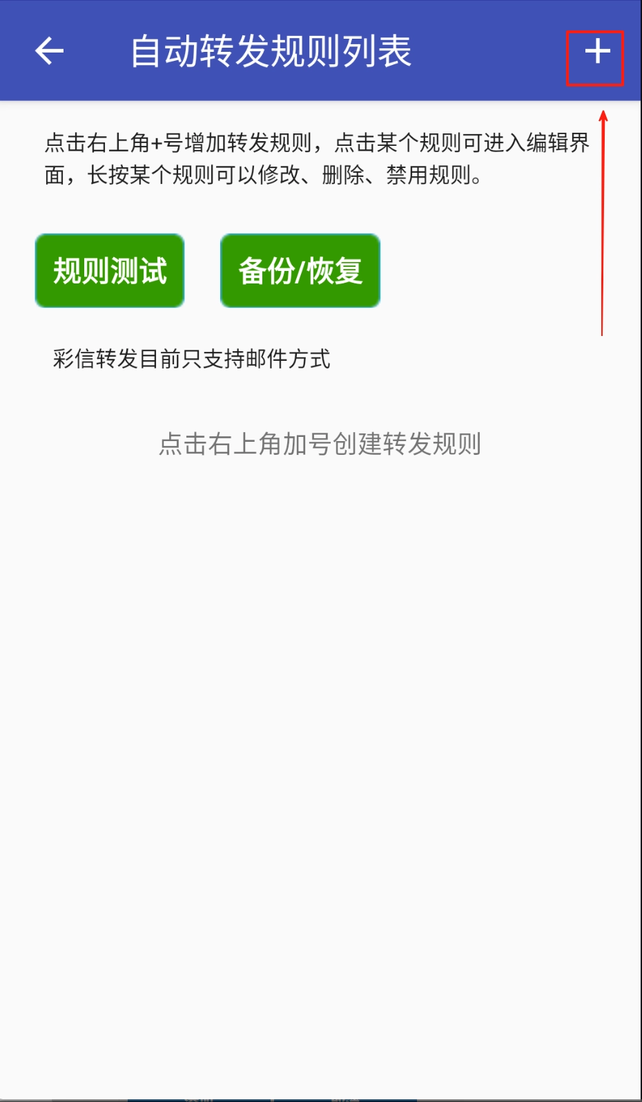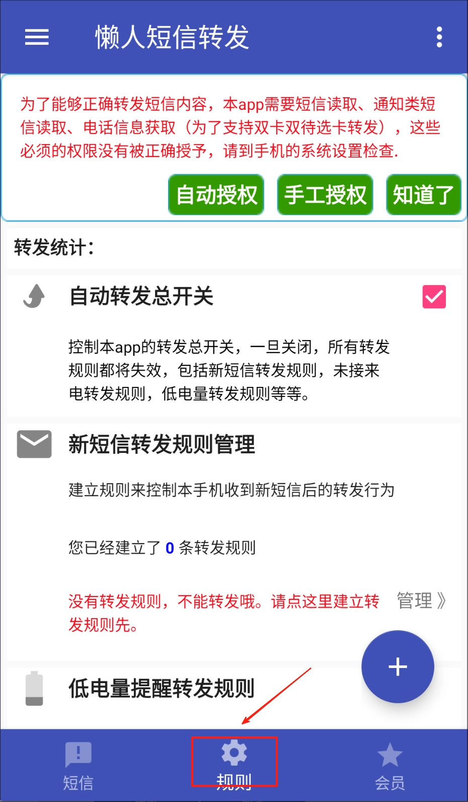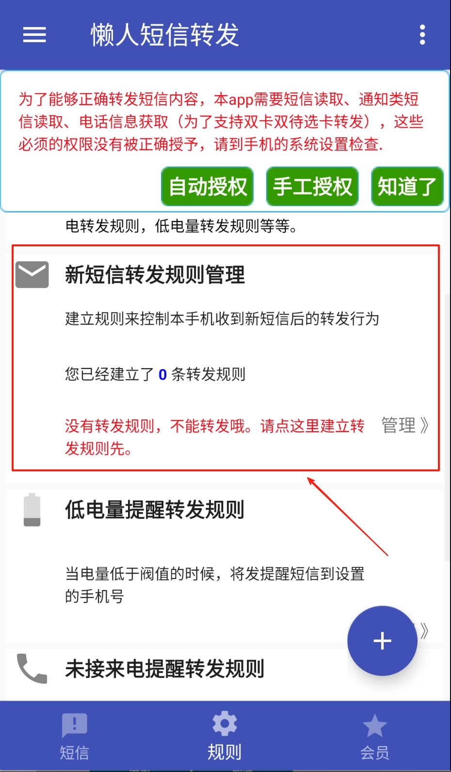 在规则界面,点击新短信转发规则管理。