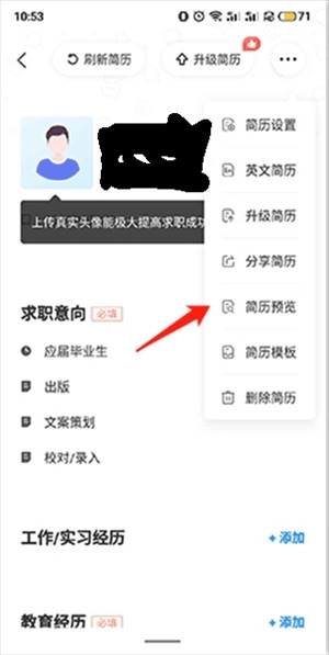 点击“简历预览”选项。