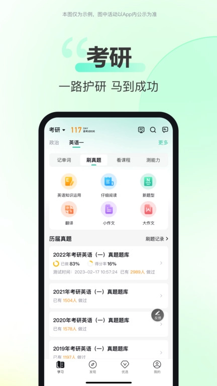 考研科目已完成全面改版,历年真题与能力测评板块现已全新上线。本次更新特别新增1300+单词记忆内容,设计有趣又好玩,能让单词记忆更轻松高效,全力助你23考研成功上岸,赶紧更新体验吧!