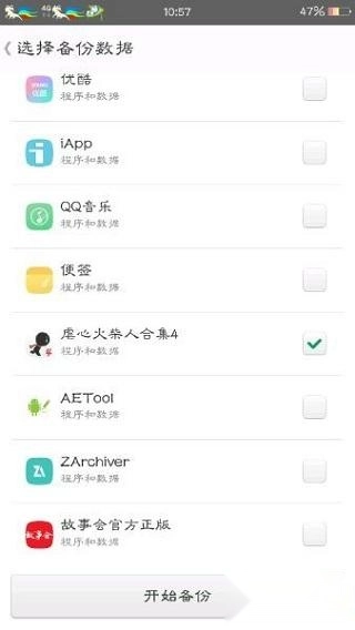打开“备份与恢复”功能,对这款游戏进行备份操作。这一步请根据你手机自身的备份与恢复流程来操作即可,重点是备份游戏数据,不同手机的备份与恢复功能可能存在差异。