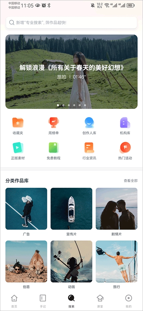 在本站安装新片场应用后,前往搜索页面挑选一个符合要求的视频。
