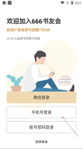 666书友会的所有功能都需要登录后才能使用,用户只需进入下方的个人空间,选择手机登录功能,就能通过手机号码快速登录,从而提升使用体验。
