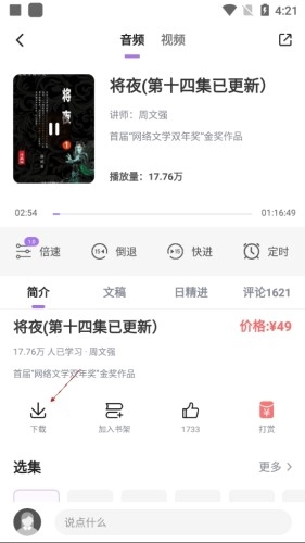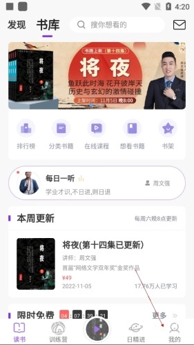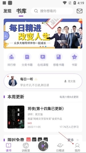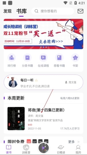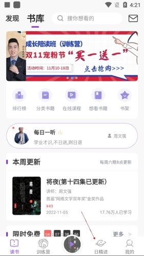 666书友会支持音频功能,你可以把自己喜欢的音频缓存下来,这样就算没有网络,也能正常使用软件,随时收听喜欢的书籍和课程。