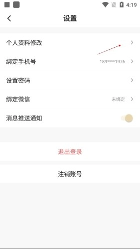 点击期中的个人资料修改就可进行邀请码的填写了。