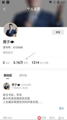 666书友会支持查看其他用户的粉丝情况。用户只需点击目标用户,即可进入其个人空间,查看对方的粉丝数量,以此作为是否订阅课堂的参考依据。