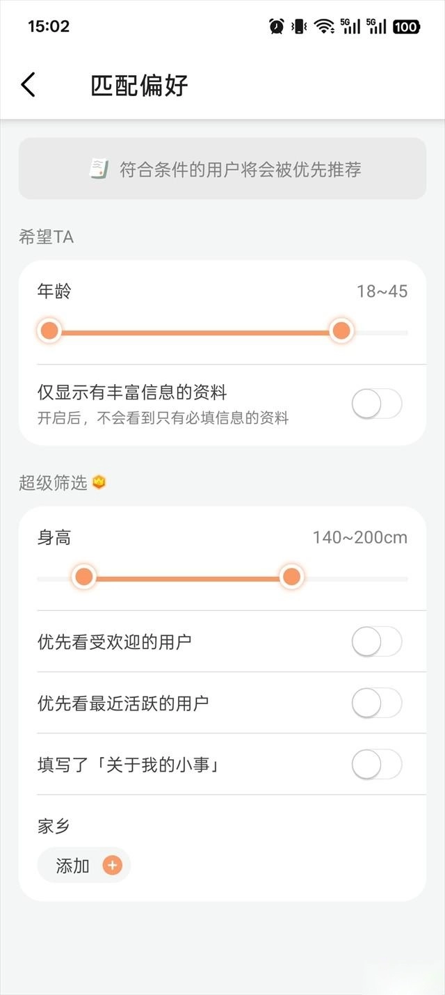 点击【匹配偏好】