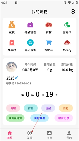 进入【我的宠物】页面,点击底部【发现】功能。
