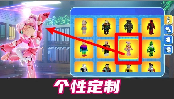 点击主界面上的个性定制图标,即可进入角色服装的选择界面,你可以挑选自己喜爱的造型,以此来打造专属于你的角色。