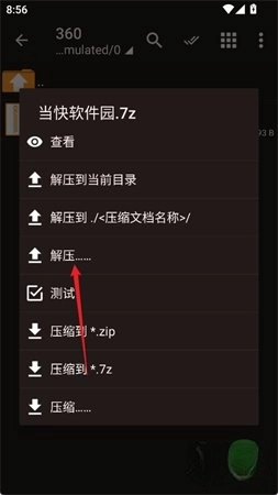 在文件操作面板中,选择“解压”选项。