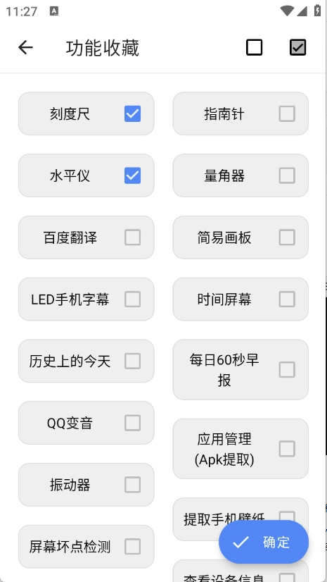 勾选想要收藏的工具点击“确定”。