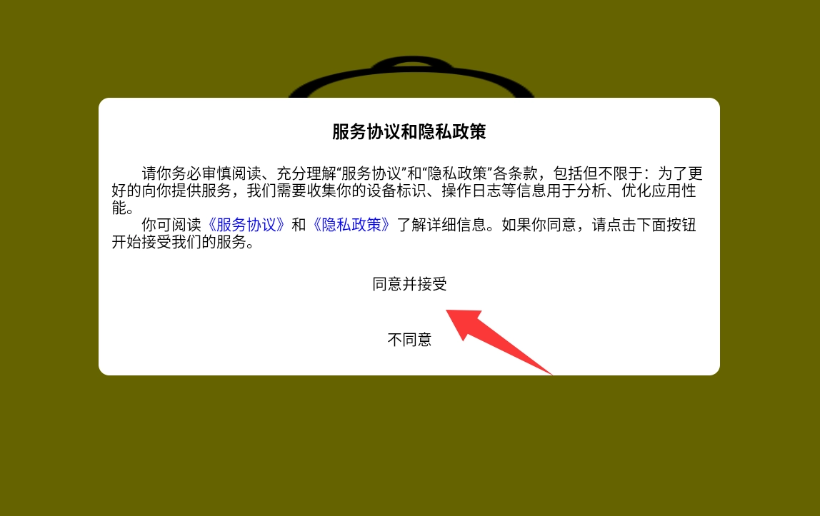 点击服务协议和隐私政策里的同意并接受。