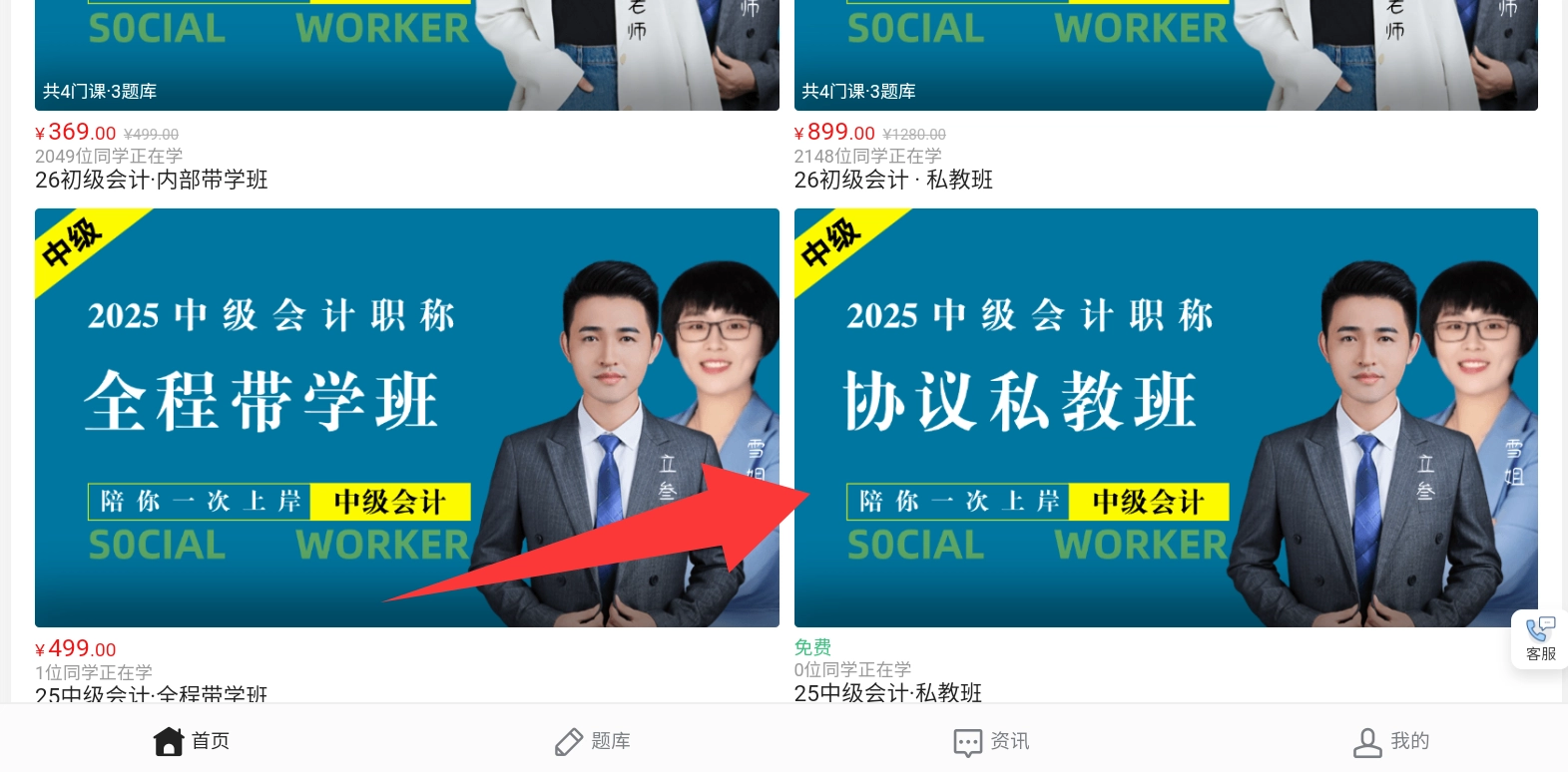 点击红色箭头那个协议私教班进去上课。