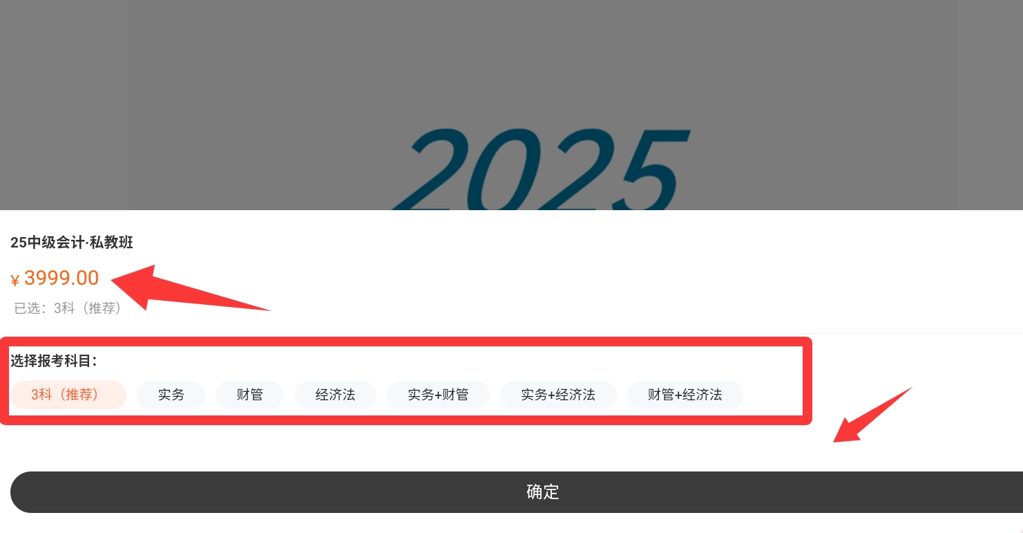 红色框框是选科目报班上课然后点击确定。