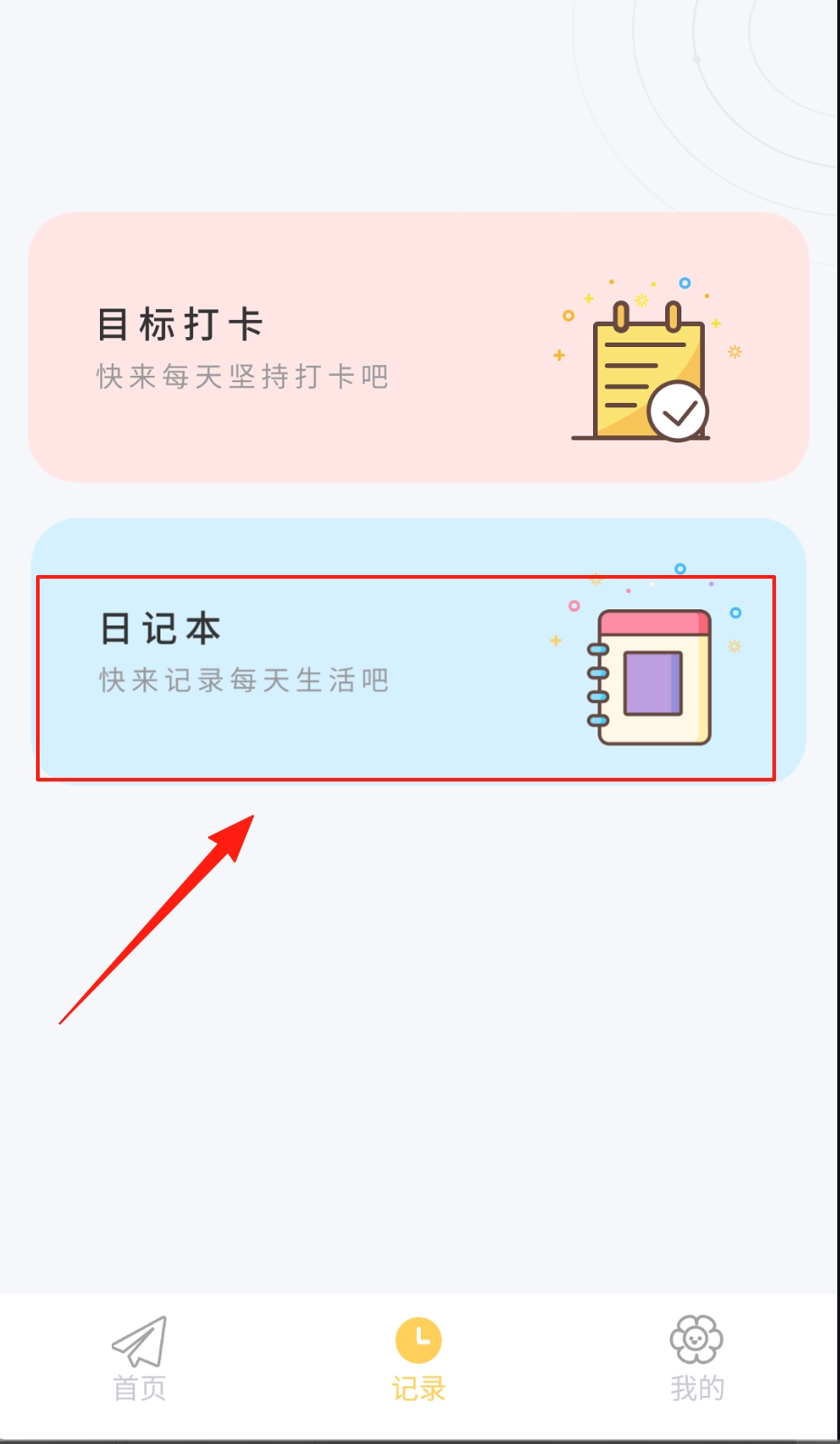 进入iCity我的日记,点击记录页面。
