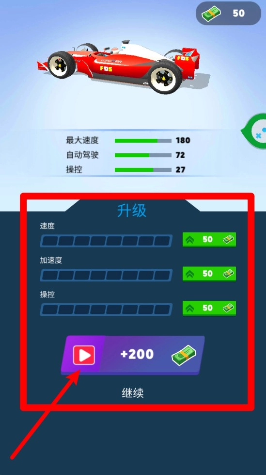 点击播放广告就能领取额外奖励,这样可以更快地赚取金币来改装爱车,让成长速度再上一层楼。