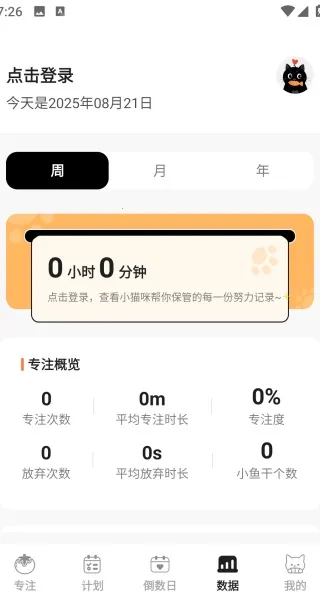 喵喵自律器是一款实用的自律辅助工具,可协助用户规划学习与工作安排,并通过专注计时器监督任务执行。界面设计简约,任务视图直观明了。该软件支持多种使用模式,还具备成长记录功能,且支持横向锁屏,各项功能整合一体,能帮助用户摆脱手机依赖,是一款值得尝试的应用。