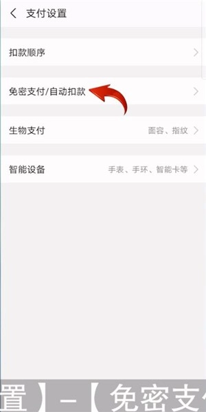 接下来点击页面上方的【支付设置】选项,然后点击【免密支付/自动扣款】选项