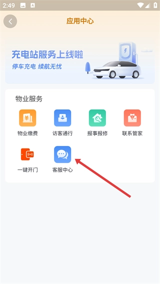 进入应用中心后,找到【客服中心】选项并点击进入,就能反馈问题了。