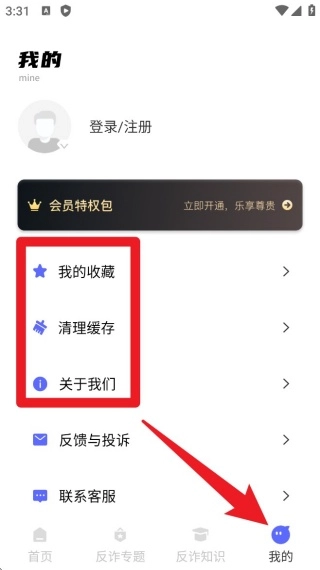 点击底部的「我的」标签页,就能进入账户管理界面,在这里可以查看收藏内容、清理缓存数据,还能联系在线客服。