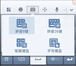 切换输入状态的方法如下:在顶部快捷工具栏中,点击左侧第二个切换键盘按钮,就能打开输入法切换菜单,从中可以选择拼音9键、拼音26键、笔画以及手写等输入方式和键盘样式。