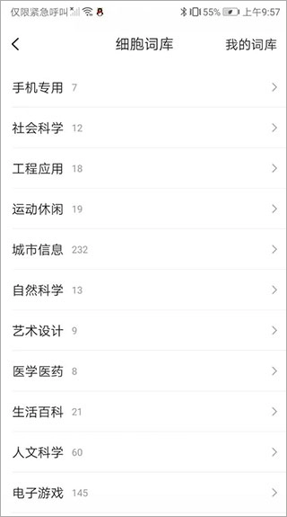 点击右上角的“我的词库”,就能查看自己已经添加好的词库内容了。