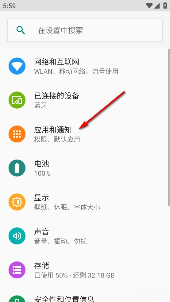 进入手机设置,点击【应用和通知】