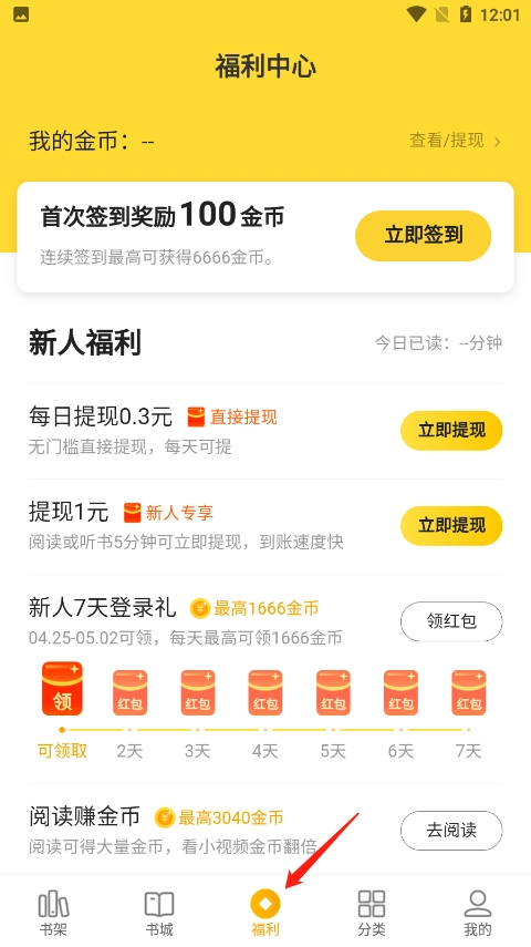 新手红包、阅读时长、每日分享、邀请好友,完成这些任务就能获得大量金币和现金奖励!现金支持提现,不仅门槛低,到账速度还很快!