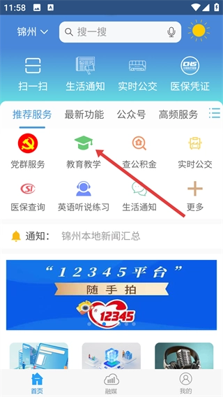 在首页找到并点击【教育教学】选项,进入对应的板块后,就能查看入学报名、中考服务等各类教育相关功能了。